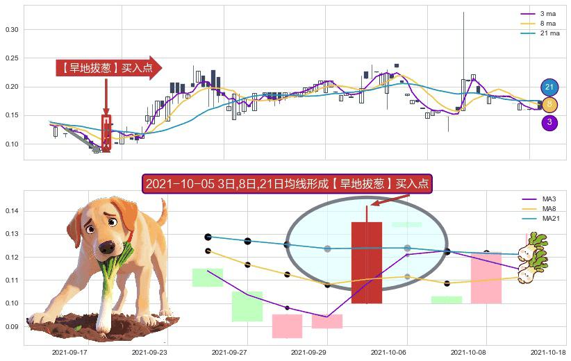 ⚀ 2021-10-05日显现 3日-8日-21日均线 【旱地拔葱】买入点 看多信号,后市看涨,买入