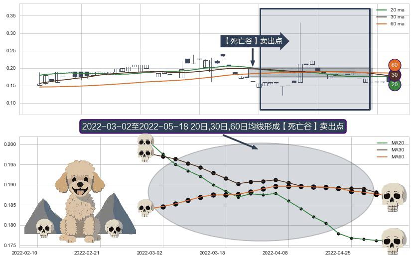 ⚀ 2022-03-04-日至2022-05-18-日显现 20日-30日-60日均线 【死亡谷】卖出点 看空信号,后市看跌,卖出