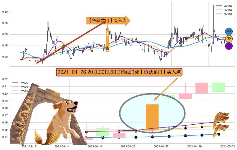 ⚀ 2021-04-26日显现 20日-30日-60日均线 【鱼跃龙门】买入点 看多信号,后市看涨,买入