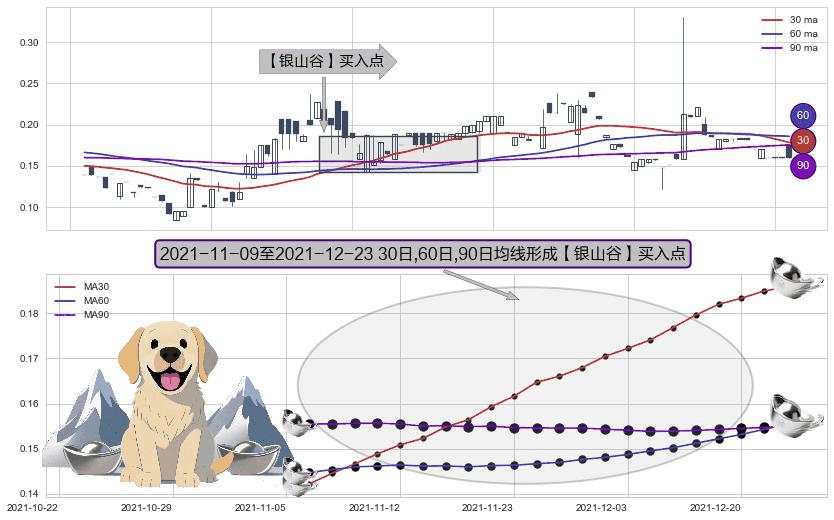 ⚀ 2021-11-10-日至2021-12-23-日显现 30日-60日-90日均线 【银山谷】买入点 看多信号,后市看涨,买入