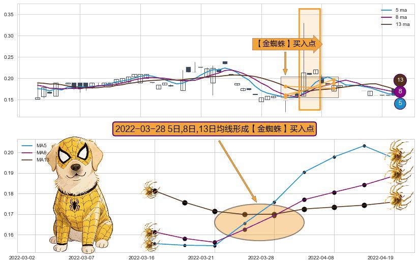 ⚀ 2022-03-28日显现 5日-8日-13日均线 【金蜘蛛】买入点 看多信号,后市看涨,买入