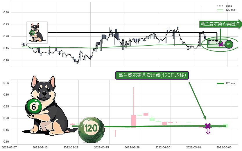 ⚀ 2022-05-19-日显现 葛兰威尔均线 120日均线 第⑥卖出点 走势反转见顶信号,后市看跌,卖出信号