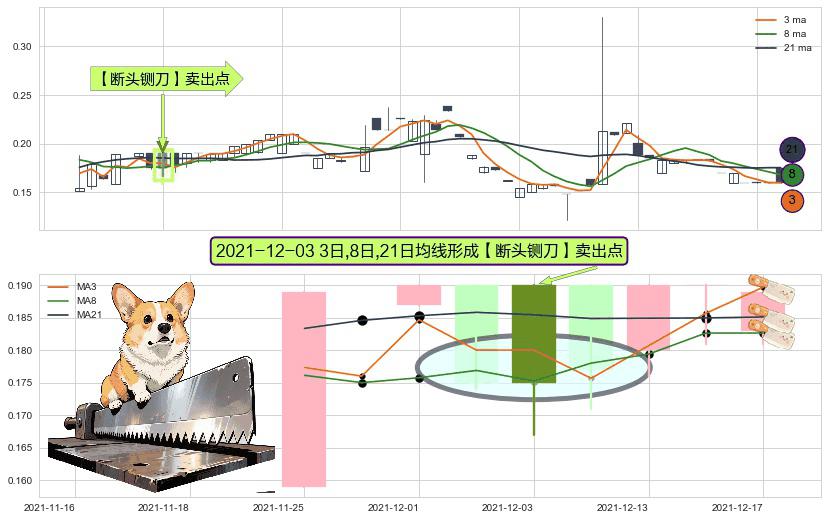 ⚀ 2021-12-03日显现 3日-8日-21日均线 【断头铡刀】卖出点 看空信号,后市看跌,卖出