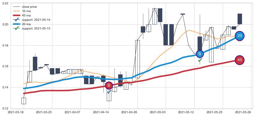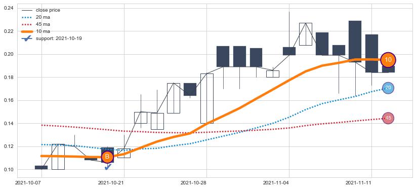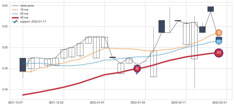 ⚃ 在破位点附近ma走势明显平稳迹象,稍后的走势中ma下垂迹象也出现,信号【可信度中等偏上】