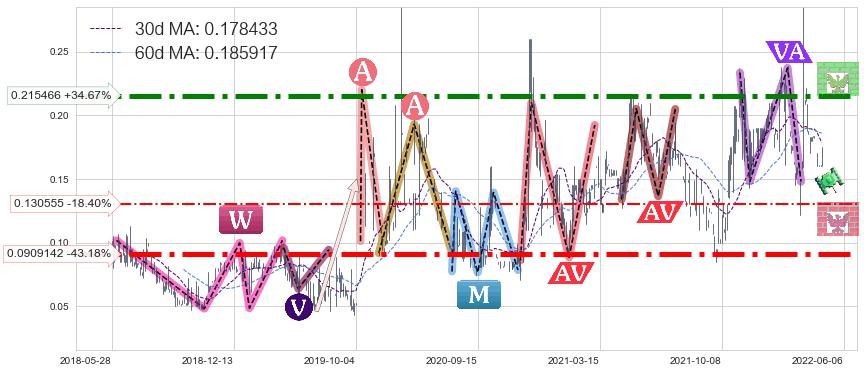♘ 阻力价格位0.215466,可信任强度95.47%,距离最后交易2022-06-06形成的收盘价格0.160000相差 +34.67%