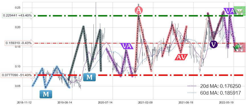 ➢ 【仅预测突破】最后价格:0.160000与预测突破价格:0.234000→【空间较大】后续最小【整理】第一目标价格→(2022-07-13: 0.32000 )