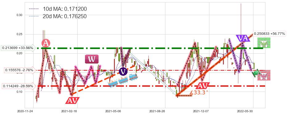 ♘ 阻力价格位0.213699,可信任强度93.81%,距离最后交易2022-06-06形成的收盘价格0.160000相差 +33.56%