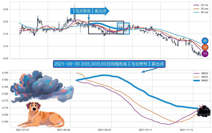 ⚀ 2021-08-11日-2021-11-18日显现 20日-30日-60日均线 【乌云密布】卖出点 看空信号,后市看跌,卖出