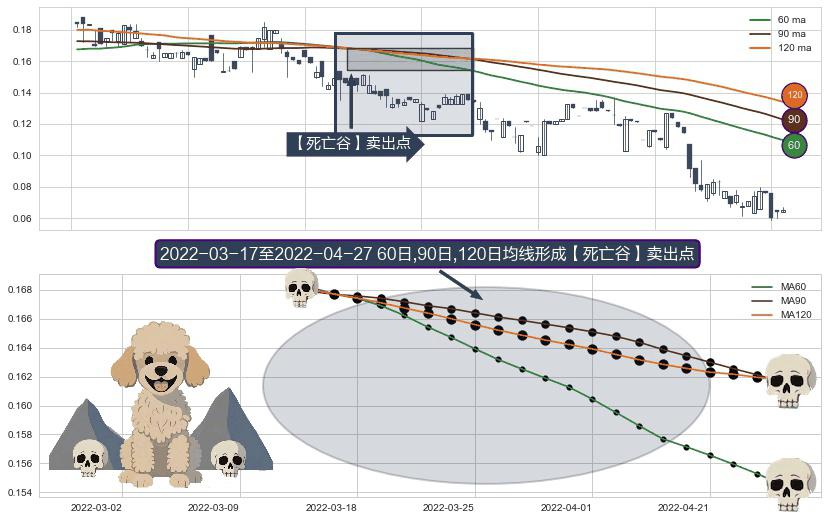 ⚀ 2022-03-18-日至2022-04-27-日显现 60日-90日-120日均线 【死亡谷】卖出点 看空信号,后市看跌,卖出