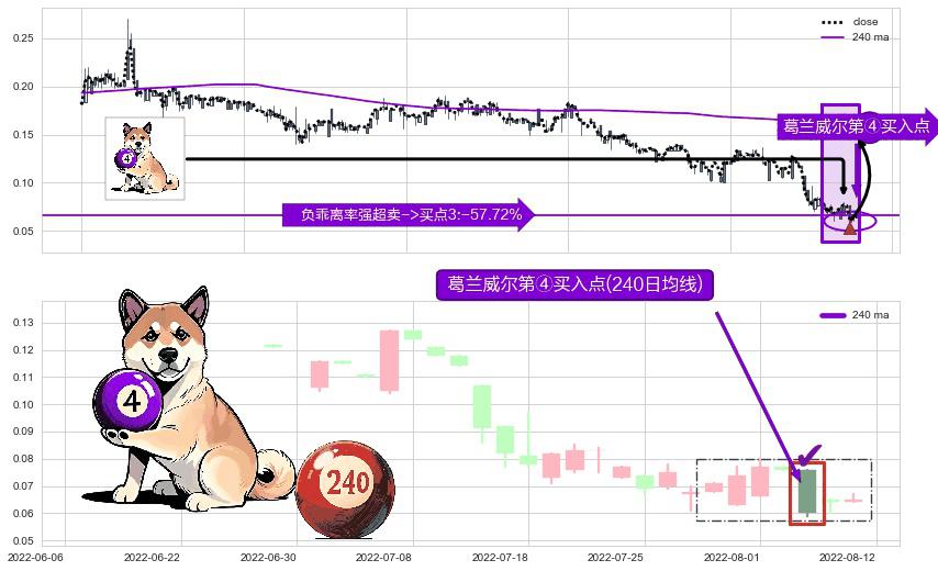⚀ 2022-08-08-日显现 葛兰威尔均线 240日均线 第④买入点 下降趋势均值回复的短线反弹信号,后市看涨,买进信号
