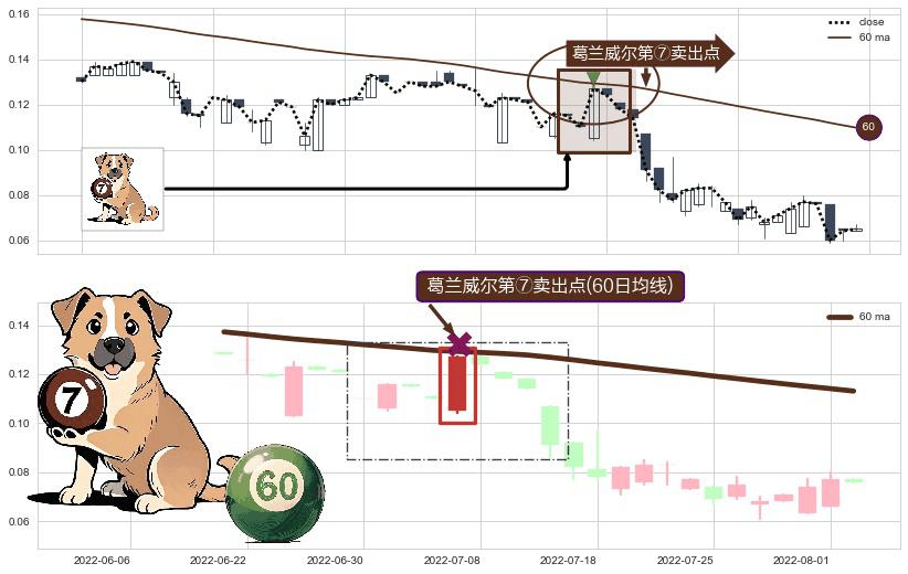 ⚀ 2022-07-07-日显现 葛兰威尔均线 60日均线 第⑦卖出点 下降趋势的中继信号,后市看跌,卖出信号