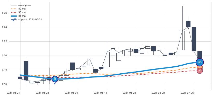 ⚀ 2021-12-22日-2022-08-12日显现 30日-60日-90日均线 【高山滑雪】买入点 看多信号,后市看涨,买入