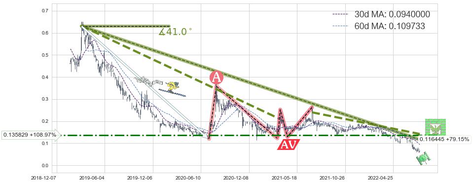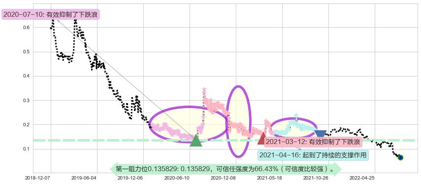 ♘ 阻力价格位0.135829,可信任强度66.43%,距离最后交易2022-08-12形成的收盘价格0.0650000相差 +108.97%