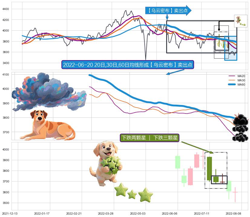 ♞ 20日均线:3664.72,60日均线:3788.55→ 快线<慢线