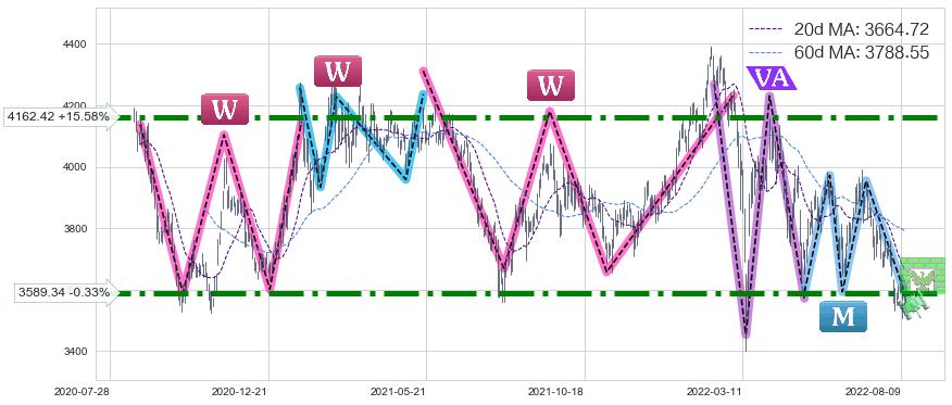 ♘ 阻力价格位3589.34,可信任强度91.71%,距离最后交易2022-08-12形成的收盘价格3601.19相差 -0.33%