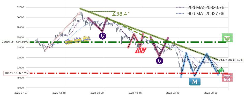 ♘ 阻力价格位25091.31,可信任强度95.45%,距离最后交易2022-08-12形成的收盘价格20175.60相差 +24.36%