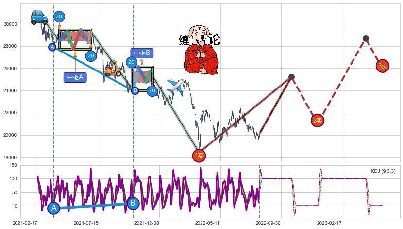 | 2 🅚:【高山滑雪】买入点 ➕ ☯️:缠论买卖点下降缠中枢AB形成后猜想拐点1买已到达,猜想后续持续拉升(均值回复) ☞ 看多信号 ⇥ 【均线】交织【图形】⇥ 综合量化分数: 53 | > |