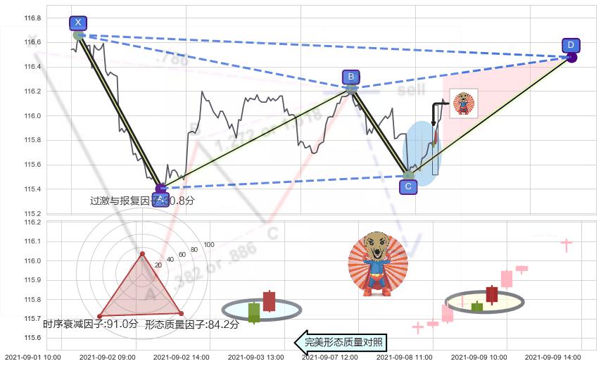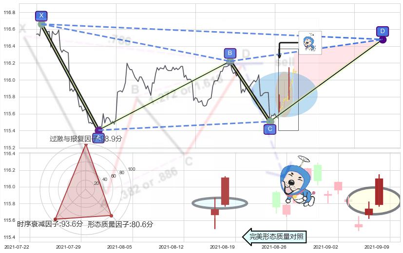 ➣ D点拟合预测价格116.48,距离最后交易收盘价格116.10相差 +0.33%