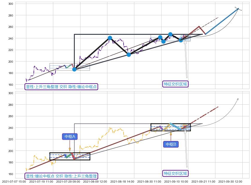 ➢ 上升三角整理与缠论中枢点信号事件周期长度级别相同,同周期信号事件