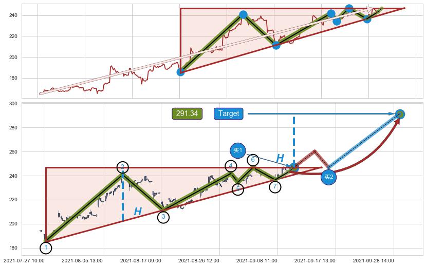 ➣ AI预测: 假定反转启动后, 第❶目标位置(10-25:09, 217.45)