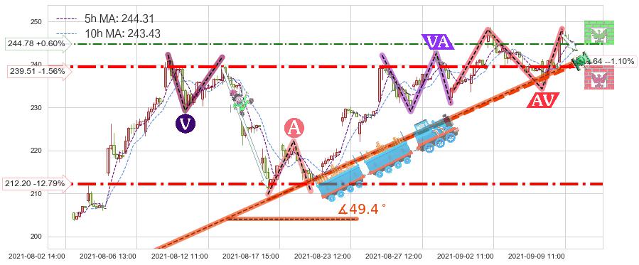 ♘ 阻力价格位244.78,可信任强度54.50%,距离最后交易2021-09-09 15:00形成的收盘价格243.31相差 +0.60%