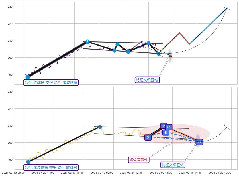 ➢ 谐波螃蟹属【短级别信号事件】降旗形属【长级别信号事件】长短周期组合信号事件, 短长事件长度比23.40%