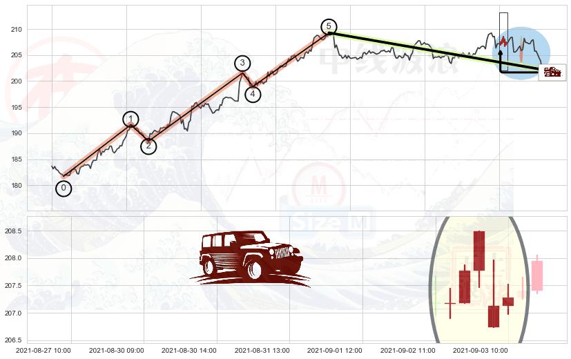 从2021-08-18 11:00至2021-09-01 12:00,共包含64个小时,阶段股价上涨2.36%,阶段股价变动位移路程比: 1 : 5