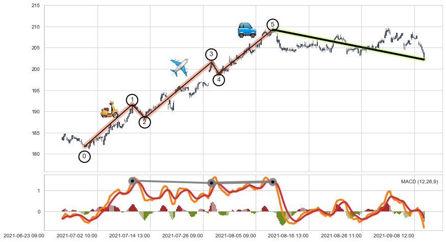 ➢ 趋势线属【短级别信号事件】缠论买卖点属【长级别信号事件】长短周期组合信号事件, 短长事件长度比26.06%