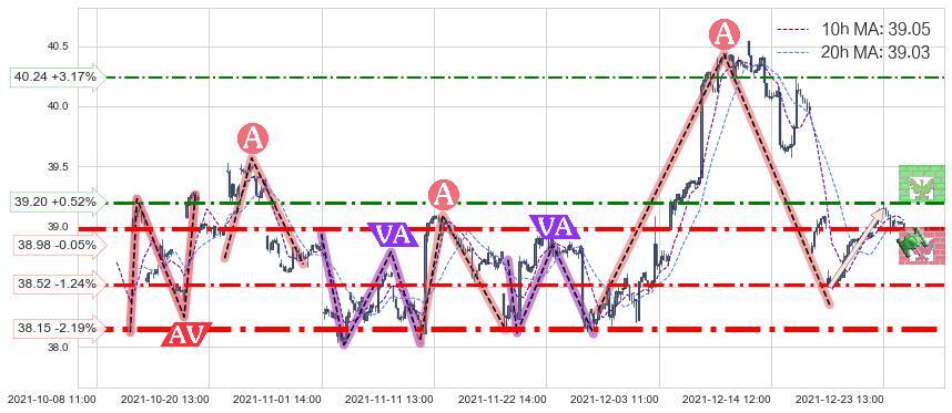 ♘ 支撑价格位38.15,可信任强度99.00%,距离最后交易2021-12-27 15:00形成的收盘价格39.00相差 -2.19%