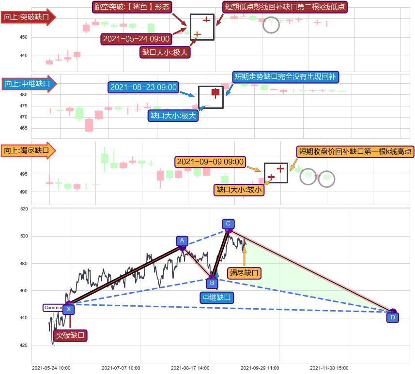 ➢ (Common ⥥ 【鲨鱼】形态) 🔜 竭尽缺口 🔜 中继缺口 🔜 突破缺口 综合量化分数:41.44 【偏空】