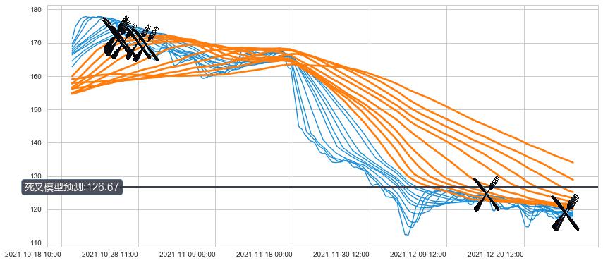 📉 多条均线基于【死叉历史模型】预测最低波谷价格的平均值: 126.67