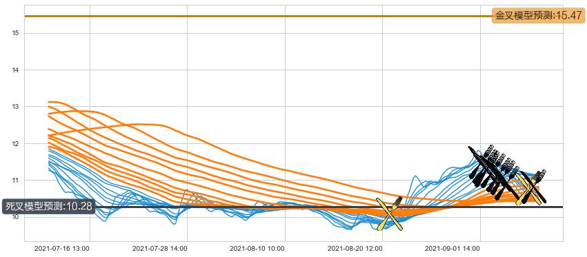 ➢ 21小时均线于(09-01 14:00: 11.47)形成【死叉】基于【死叉历史模型】预测死叉后最低波谷价格: 10.82, 死叉后最低价格10.39,已经下跌超出预测最低波谷价格, 预期反弹