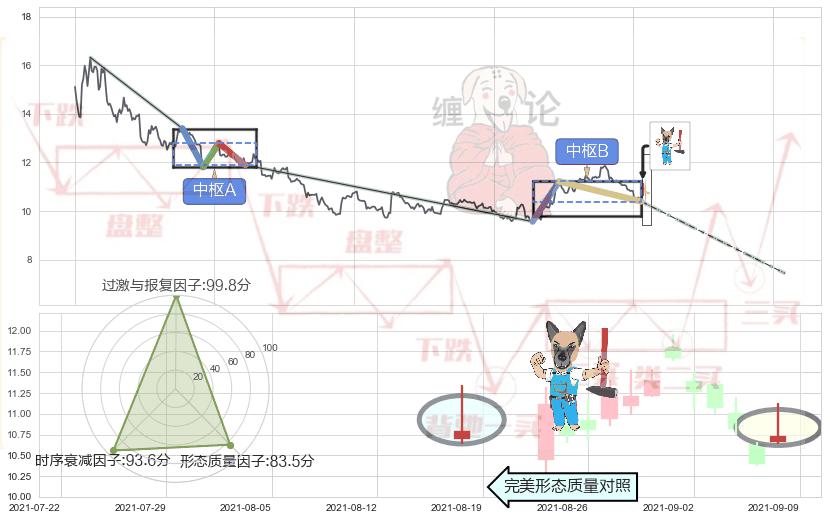 从2021-08-19 14:00至2021-09-09 14:00,共包含85个小时,阶段股价上涨12.35%,阶段股价变动位移路程比: 1 : 6