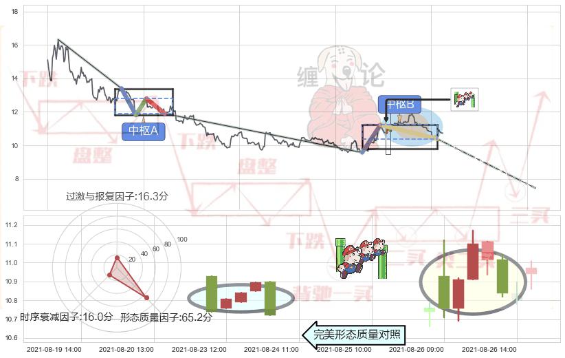 从2021-07-27 11:00至2021-08-19 14:00,共包含106个小时,阶段股价下跌-0.69%,阶段股价变动位移路程比: 1 : 125