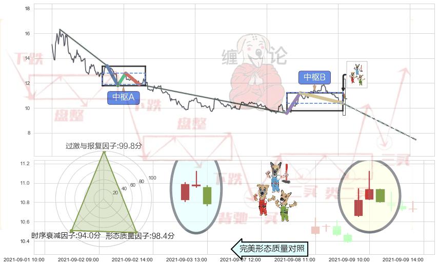 ➣ 【中枢B】:08-19:14-09-08:14,中枢由3笔构成,共79交易小时, ZG=11.22, ZD=10.39