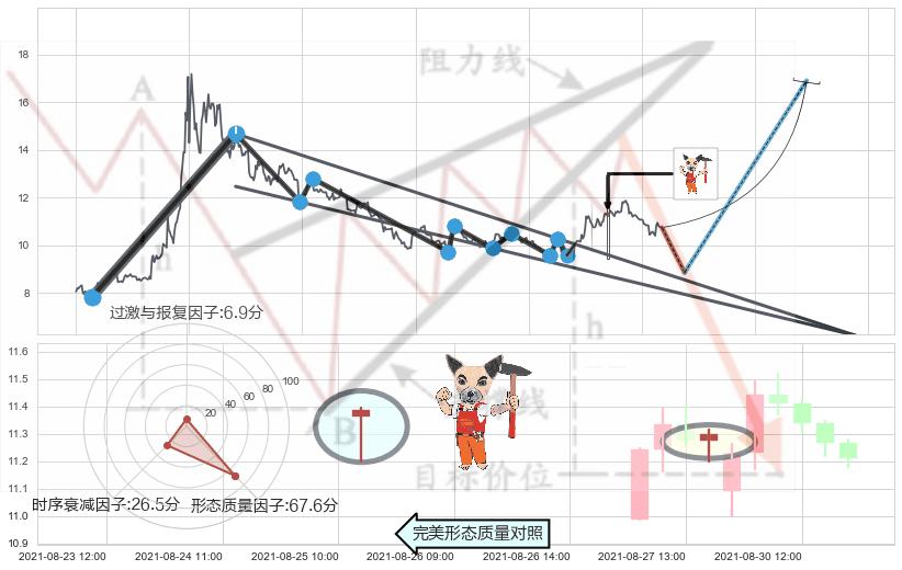 ➣ 锤头线(锤子线) + 降楔型阻力突破转换支撑上涨信号叠加后【目标达成率】中等,【看多】信号叠加【存续影响中等】