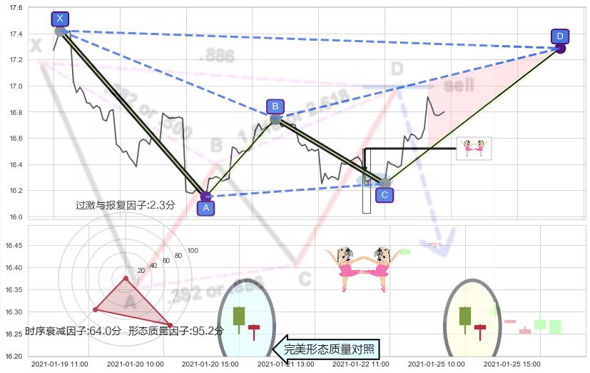 从2021-01-12 16:00至2021-01-21 09:00,共包含36个小时,阶段股价上涨0.65%,阶段股价变动位移路程比: 1 : 13
