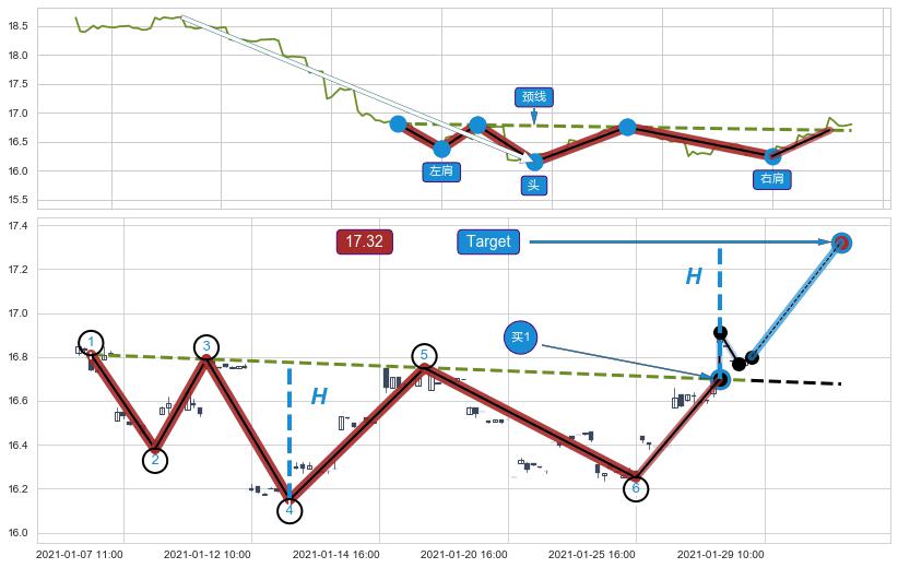➢ 【买1】: 激进型 买点 →(01-28:10: 16.70 )形成突破头肩底【反转】形态