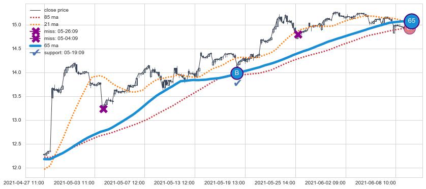 👍 尚未达到多条均线预测的最高波峰价格的平均值, 预期继续上涨