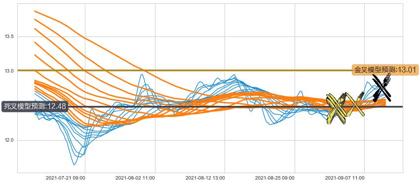 ➣ 85小时均线于(09-01 10:00: 12.50)形成【金叉】基于【金叉历史模型】预测金叉后最高波峰价格: 13.13, 金叉后最高价格12.87,尚未达到预测最高波峰价格, 预期继续上涨