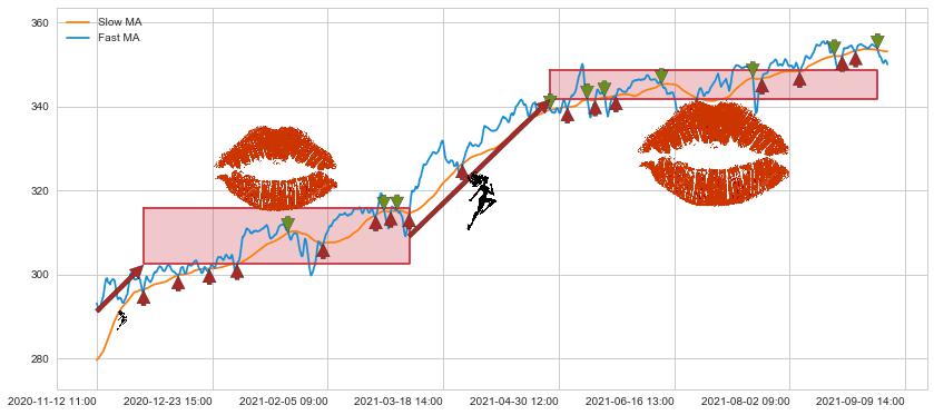 04-28 10:00至09-07 09:00 慢线与快线多次接触,存在上下穿越,有缠绕