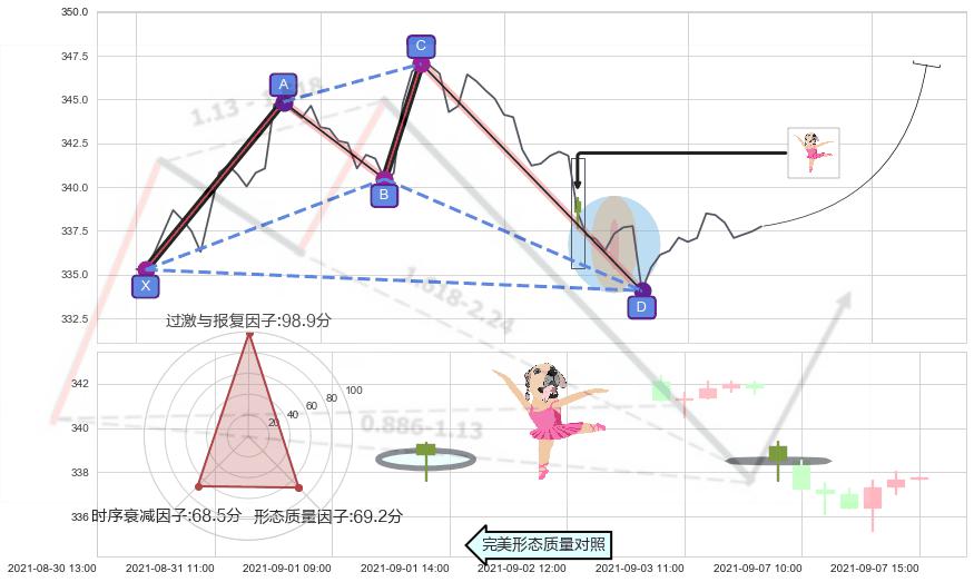 ➢ 🕰 价格走势在2021-09-08 09:00:00至2021-09-08 10:00:00期间形成中流砥柱形态,残存影响值:6.38