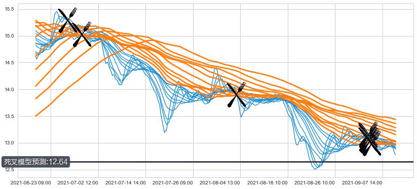 📉 多条均线基于【死叉历史模型】预测最低波谷价格的平均值: 12.64
