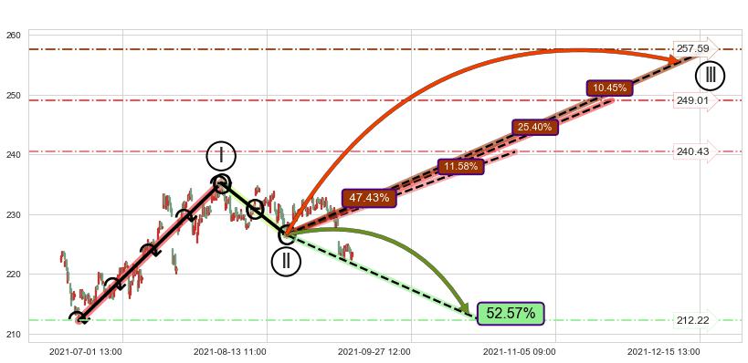 ➢ 【仅预测突破】最后价格:222.93与预测突破价格:230.59→【空间中等】后续最小【整理】第一目标价格→(10-11:12: 249.07 )
