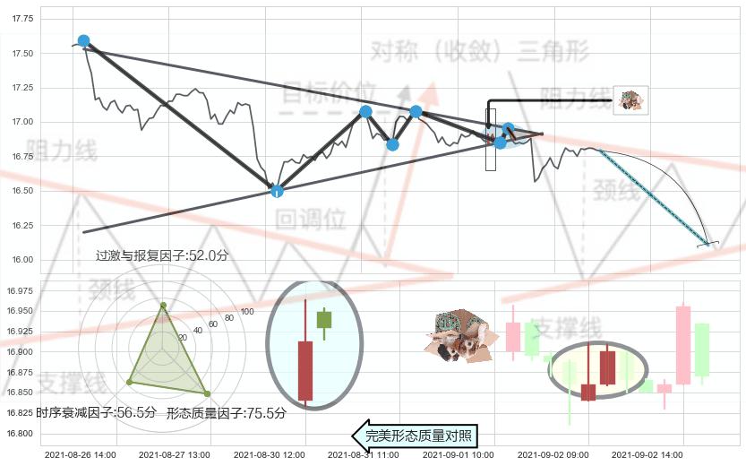 ➢ 【卖1】: 激进型 卖点→(09-03:10: 16.87 )形成突破下降【对称】三角形整理【整理】形态