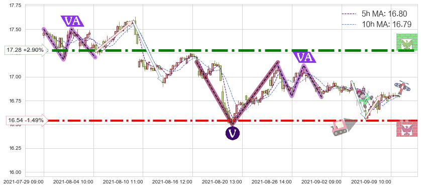 ♘ 阻力价格位17.28,可信任强度95.01%,距离最后交易2021-09-09 14:00形成的收盘价格16.79相差 +2.90%