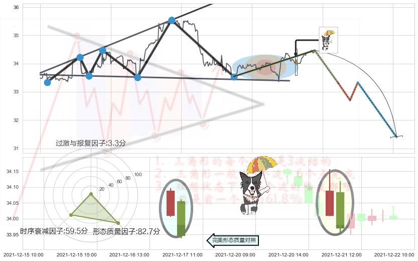➢ 🕰 价格走势在2021-12-22 11:00:00至2021-12-22 12:00:00期间形成顶部尽头线(下山虎),残存影响值:-3.36