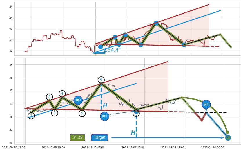 ➢ 11-22:12到达第❶价格目标位置34.41