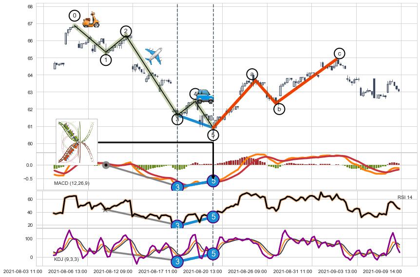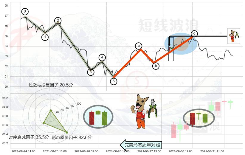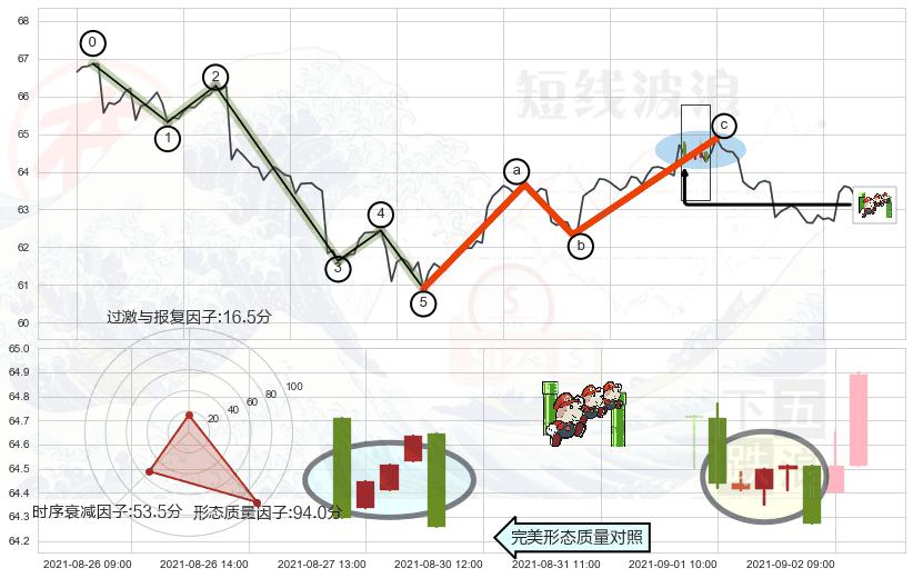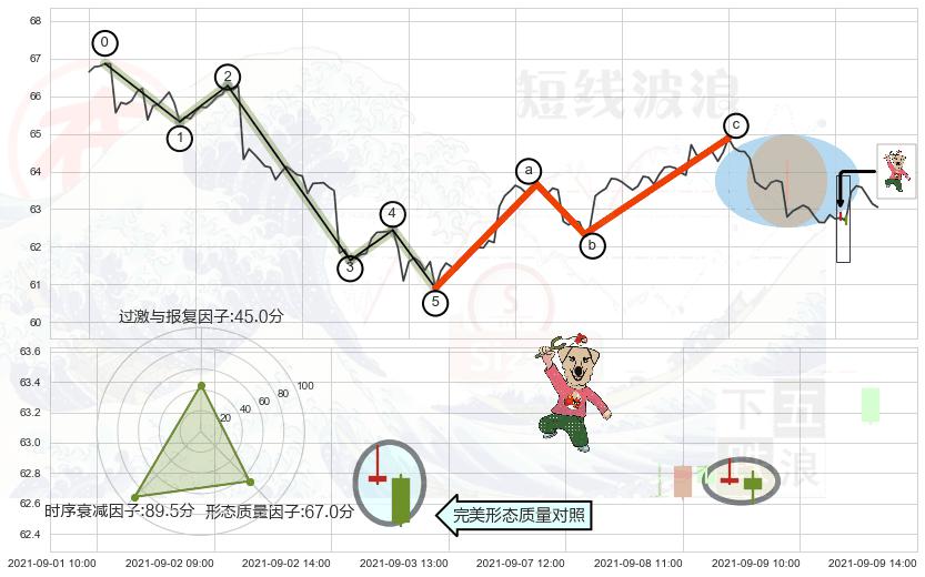 从2021-08-26 13:00至2021-09-08 10:00,共包含46个小时,阶段股价上涨0.54%,阶段股价变动位移路程比: 1 : 24