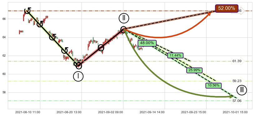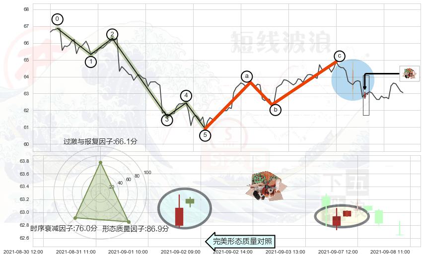 ➢ 循环浪继续向下【最高】位置(09-21:10, 61.39),匹配聚类样本比例23.85%, 可能性概率11.44%